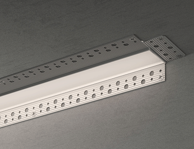 An intuitive linking system ensures precise alignment between profile sections, streamlining installation while maintaining a continuous, uninterrupted appearance. The aluminum channels feature cove apertures of 1.24 inches and 1.63 inches, while a paintable finish allows them to disappear effortlessly into any architectural palette or design intent.